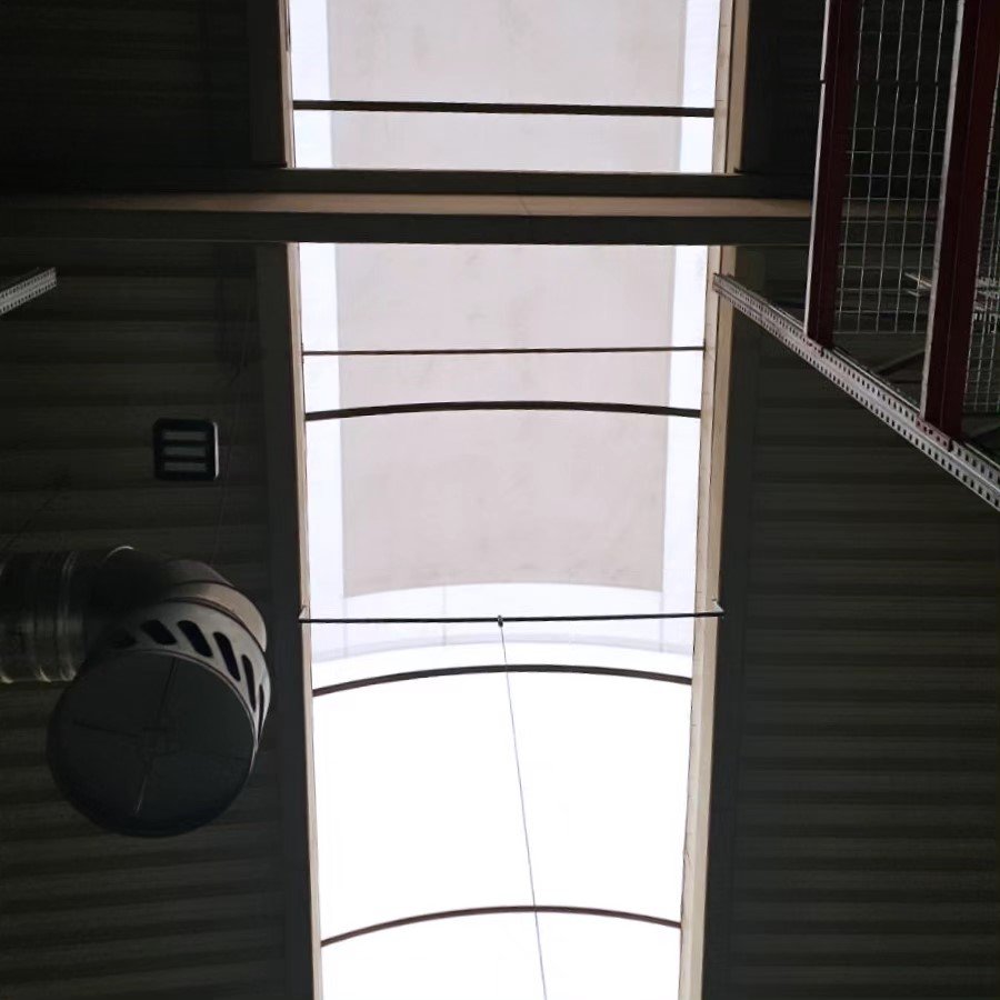 Aj z tohto dôvodu sme u tohto klienta museli byť kreatívni a prísť s nápadom, že tieniacu plachtu v rámci jedného svetlíka ušijeme z materiálov s rôznou priepustnosťou slnečného svetla a energie.