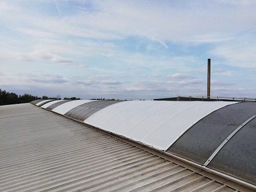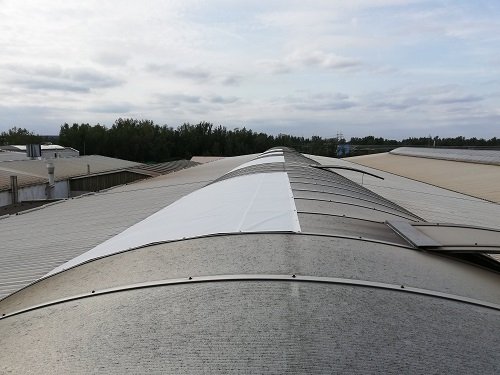A tak sme sa pustili do hľadania najefektívnejšieho riešenia. Svetlík mal impozantné rozpätie – viac než 6 metrov na šírku cez oblúk. Z tohto dôvodu sme zvolili najvhodnejší variant, pri ktorom sme zatienili iba tie miesta, kde dochádzalo k nepríjemnému oslneniu, čím sme zabezpečili optimálne podmienky pre pracovníkov bez zbytočného obmedzenia prirodzeného svetla.