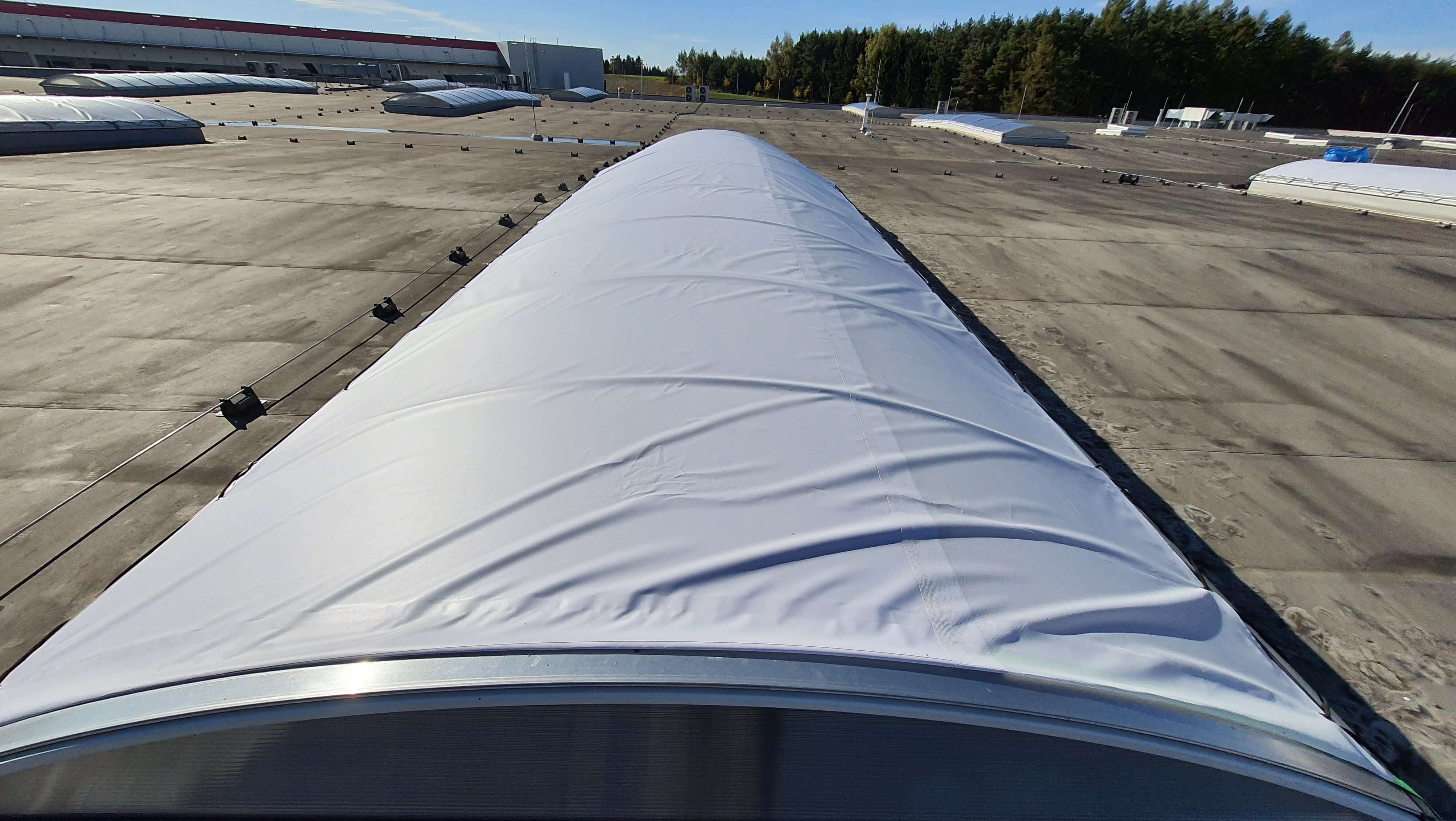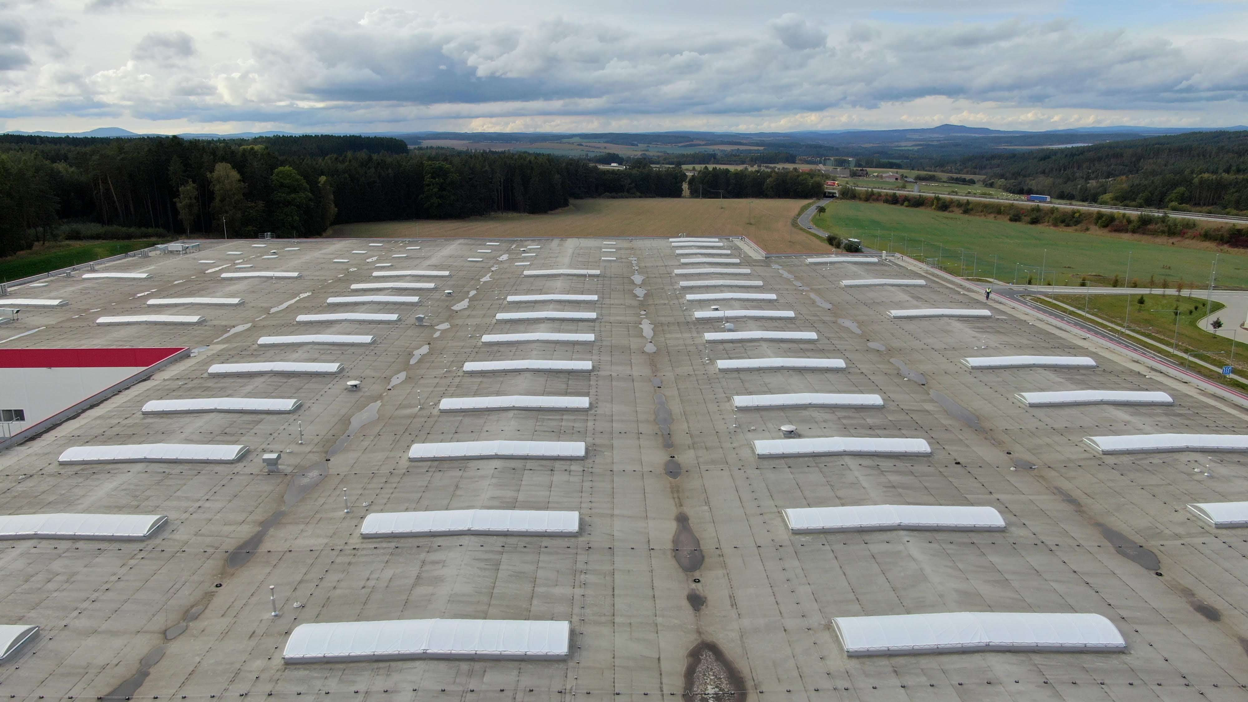 Naša spolupráca s KION v Stříbre začala menším projektom – zatienením troch skúšobných svetlíkov. Klient si chcel vyskúšať náš nový, vylepšený systém uchytenia tieniacej plachty, ktorý nevyžaduje žiadny zásah do konštrukcie svetlíkov.
